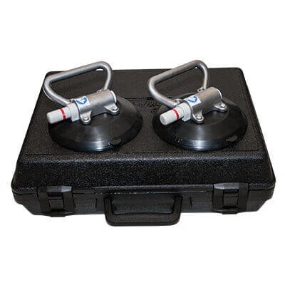 TWO 6fl VACUUM CUPS W/RIGID HANDLES & CARRYING CASE, FLAT PAD